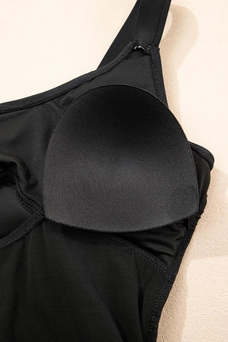 Black Adjustable Straps Cutout Ruched Knot Slit One Piece Swim Dress | Women One-Piece
